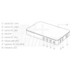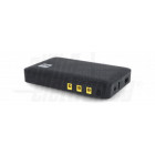 Grazie alla grande capacità della batteria al litio (8000Ah) si possono raggiungere fino a 8 ore di autonomia. E' possibile scegliere tra 3 tensioni di uscita con connettore 5,5x2,1mm (5/9/12Vdc) oppure una uscita USB 5V.